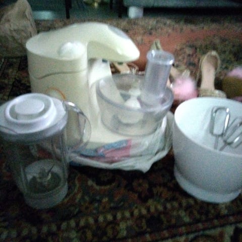 Myydään itselle tarpeettomaksi osoittautunut monitoimikone. Vaatii korjausta, rohisee ja öljyä karkaa jostain kolosta käytettäessä. Itsellä ei tule aikaiseksi viedä korjattavaksi, mutta tästä saa varmasti hyvän korjaamalla! Mukaan tulee lisäksi koneeseen sopiva kulho ja kuvassa olevat vempaimet.