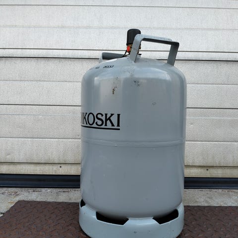 Käyttämätön täysi 11kg teräksinen painoventtili nestekaasupullo.