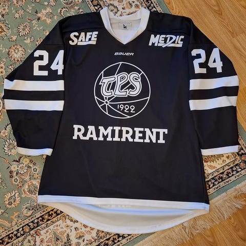 Myydään TPS kannattajapaita premium. 100% autenttinen tuote ostettu TPS shopista. Koko S/M. Todella vähän käytetty ja maltillisesti käytön jälkiä. Hinta uutena 139€. Replica aidosta pelipaidasta. Logo & hiharaidat ommeltu.
