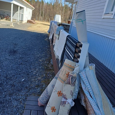 Myydään itse kudotut, hyväkuntoiset matot. Voi ostaa yhden tai useamman maton. Kuvissa mattojen mitat. 75×140cm 25€. 75×120cm 15€. 75×95cm 10€. Matot noudettavissa Pulkkilasta.