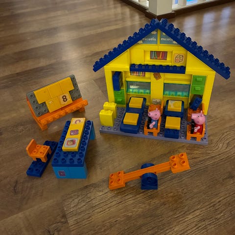 Pipsapossu rakennuspalikat, josta saa Pipsapossuntalon Muutama hahmo mukana. Osat ovat yhteensopivia duplo-legopalikoiden kanssa.