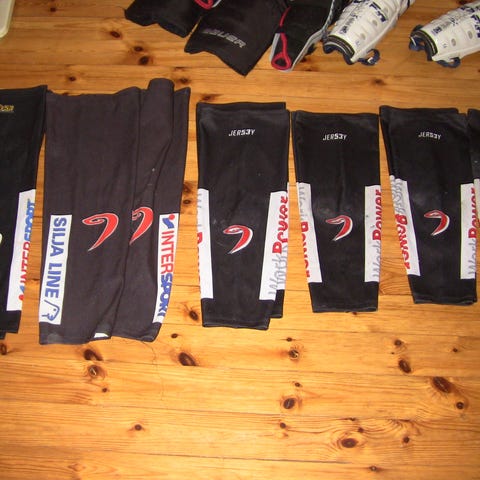 Täysin käyttökelpoiset, kulumia on mutta ei reikiä, ehjät tarrat (edessä ja takana). Koko junior. Pituus noin 59 cm ja leveys keskikohdalla noin 23 cm.