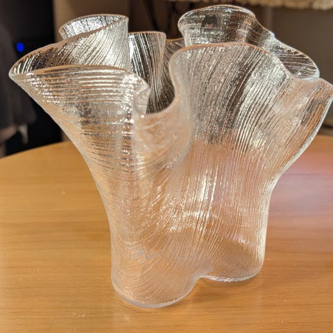 Tyylikäs ja kaunis lasimaljakko. Tämä on erittäin hyvässä kunnossa, todella siisti ja täysin ehjä.