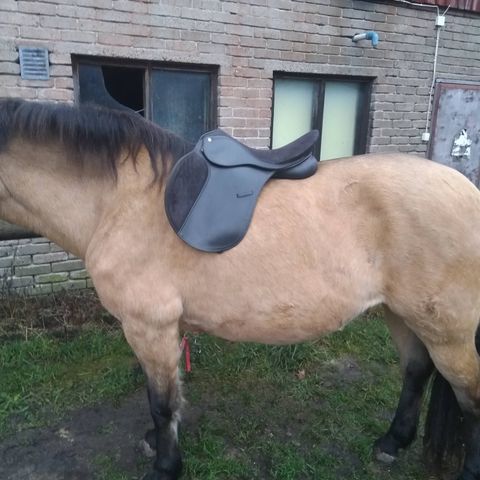 Käytetty yksisiipinen satula ( hieman kaareva selkään, pieni säkä oltava)