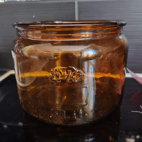Karhulan 10 litrainen lasinen narupurkki, jota on vaikea löytää tänäpäivänä edes antiikkiliikkeistä. Erinoimaisessa kunnossa. Kulhon koko on kork. 22 cm, läpimitta 28 cm.