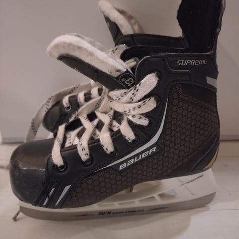 Todella mukavat ja hyvät luistimet aloittelevalle pelaajalle. Näillä 1,5 kautta pelattu, joten ulkoisia jälkiä löytyy, mutta terät hyvät, pintaa hyvin jäljellä ja kaikin puolin ehjät.
