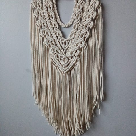 Itse tehty makrameryijy, vaalea beige. Todella kaunis ja laadukas. Leveys n.57, korkeus n.98cm. Voin lähettää