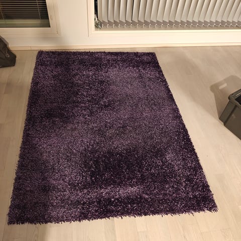 Useilla eri lilan sävyisillä trikoilla kudottu matto, jossa mustikansininen kude kulkee toisena koko matkan. Pariksi kudottu toinen matto eri raiita'aluein, ei symmetrinen, joka toisessa kuvassa. Kakkoskuva otettu auringonpaisteessa ja värit todellista vaaleammat. Matto on painava. Kerran pestyt. Yhden hinta 65 e. Jos ostat molemmat, yhteishinta 110 e.