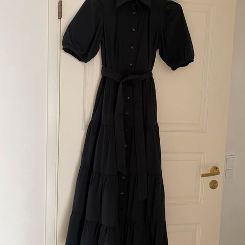 Andiatan Elinor Bouclé -mekko, jossa kullanväriset napit edessä ja taskuissa. Kaksi toimivaa taskua ja kaksi tekotaskua. Mekossa on lyhyet hihat, pyöreä pääntie, polvipituinen helma ja on täysin vuorattu. 90% Puuvilla, 5% Polyamidi.