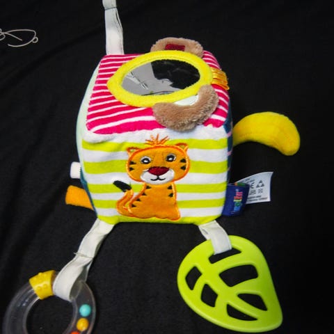 Pehmeä tilkkukuutio. Sopii pienelle lapselle. Ei irtoavia osia, pehmeä sisällä vanua. Sopii vaikka tyynyksi tai heitettäväksi. Mitat 20 x 20 x 20cm. Voidaan pestä pesukoneessa.