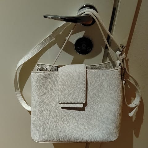 Myydään musta käsi-/olkalaukku. Nepparikiinnitys. Paljon taskuja sivuilla ja päädyissä. Sisällä vetoketjullinen sivutasku ja avotaskut. Irrotetteva ja säädettävä olkahihna. Kanvas-tyyppistä ryhdikästä kangasta. Koko n. 22x22 cm, pohja n. 13x20 cm. Tilava laukku. Ehjä, uusi.