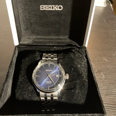 Muutaman kerran käytetty täysin toimiva automaatti Seiko alkuperäisessä pakkauksessa.