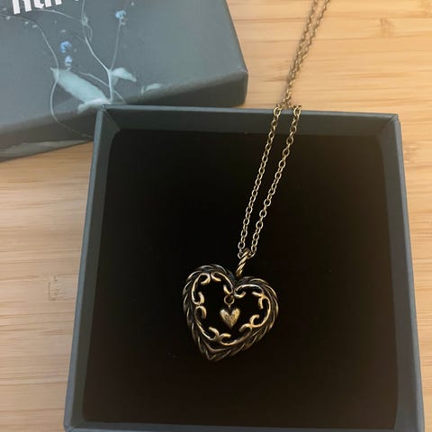 Myydään rasiassa oleva Kalevalan pronssinen talonnsydän riipus.