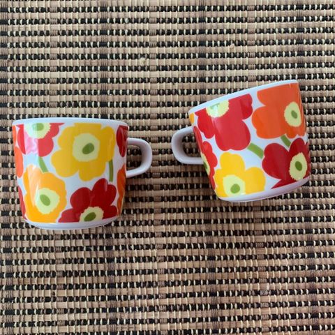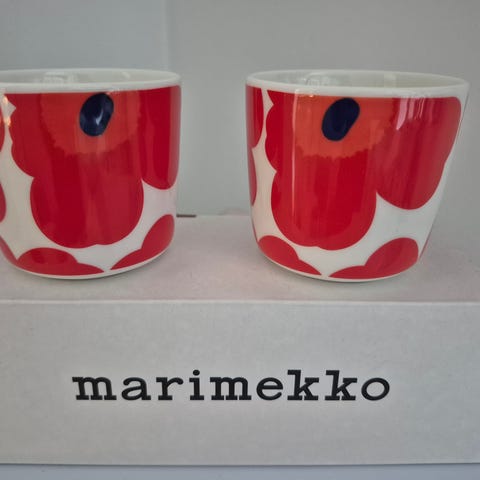 Kaksi Marimekon Unikko kahvikuppia 4 dl yhteensä 35e. Haku, en postita.