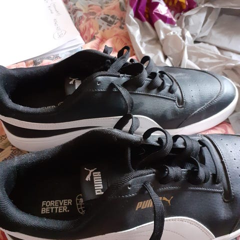 Kenkien mukana vaihtonauhat ja velcroilla kiinnittyviä Puma logoja
