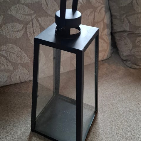 Pienehkö lyhty, johon voi kuvan mukaisesti laittaa vaikkapa tuikkukynttilän.