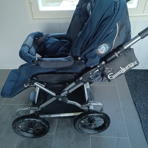 Emmaljunga siniset yhdistelmävaunut. Kulumisen merkkejä mutta toimivat ja laadukkaat rattaat. Vain nouto Vuosaari.