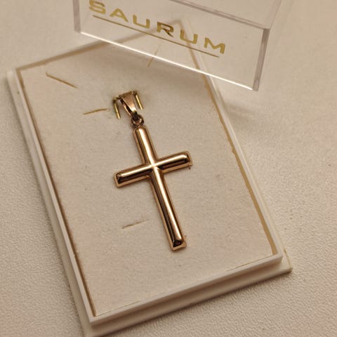 kulta Rippiristikoru jollekkin, 10g 18 k kulta koru ja risti yhteensä, molemmat kultaa risti ja koru