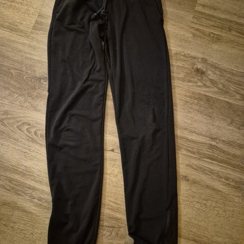 Myynnissä kuvan erinomaisessa kunnossa olevat hyvin kevyet, joustavat ja hajuttomat urheiluhousut. Kuivuvat nopeasti. Vyötärökiristys, edessä vetoketjutaskut ja lahkeissa kiristys. Väriltään mustat ja koko 150cm.