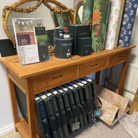 Kolmion mallinen laatikosto. Metalliset nupit irti, tallessa. Hiottu, voi maalata tai öljytä.