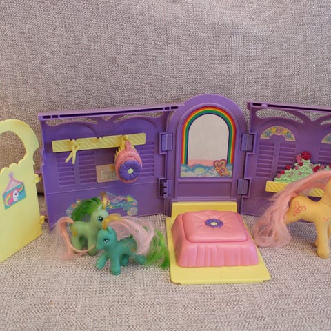Kuvan mukaisia 90-luvulta olevia My little ponyja. Kunto tyydyttävä/heikko (mm. timanttisilmät puuttuu). Mukaan saa myös 90-luvun mäkkäri G2 poneja. Ei myydä erikseen. Nouto Simonkylästä tai postitus postin hinnaston mukaisesti