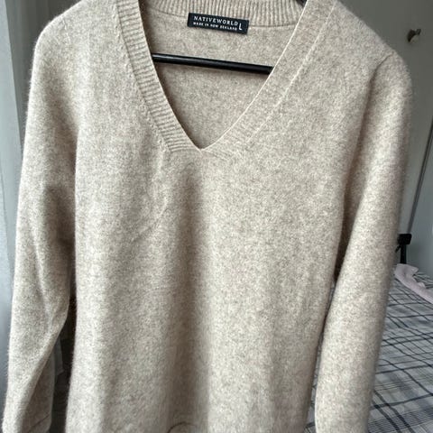 Hienolaatuinen beige merinovillapaita.