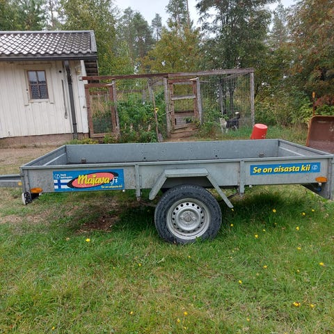 Myydään 2 akselinen, jarrullinen peräkärry. Katsastettu 16.7.2025, seuraava katsastus viimeistään 31.12.2027. Lavan koko 300×150 cm. Tekninen suurin salittu kokonaismassa 1600 kg. Kantavuus 1300 kg. Vetopää/työntöjarru ja jarrukengät uusittu. 2 renkaat. Kuomussa muutama halkeama.