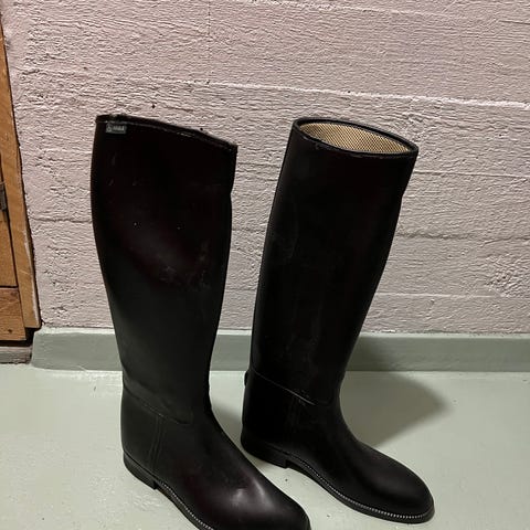 Ratsastussaappaat Aigle 39. Toinen saapas naarmuuntunut käytössä. Kulkeutuvat myös Espooseen ja Nummelaan.
