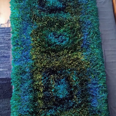 Hyvässä kunnossa oleva vanha ruusuryijy. Ripustustanko on.