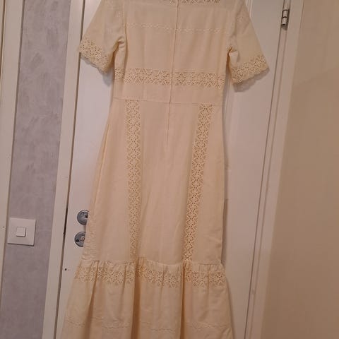 Yksinkertaisen kaunis satiinimekko. Takana narunyöritys, joka antaa säätövaraa koon kanssa. koko 42