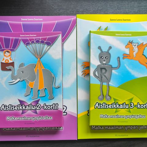 Käyttämättömät Aistiseikkailu kirjat ja kortit (muoveissa). Osat 1-3.