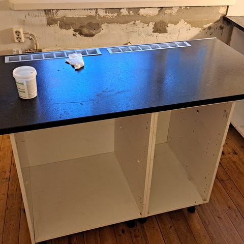 Pituus 1850, syvyys 900 mm ja paksuus 30 mm. Lieden aukko leveys 560 ja syvyys 500 mm. Aukko on pituussuunnassa keskellä. Saarekkeen kaikki reunat pyöristetty.