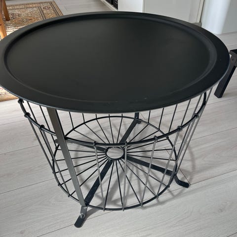 Tämä monitoimipöytä toimii myös välipalatarjottimena ja korina peittojen tai lehtien säilyttämiseen – poissa tieltä, mutta esillä. Tilava ja ilmava pöytä, jossa on harjattu teräspinta ja kaarevat jalat. Korkeus 47 cm, halkaisija 60 cm.