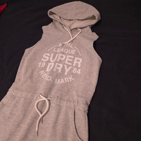 Hyväkuntoinen musta Superdry collegemekko, koko S.