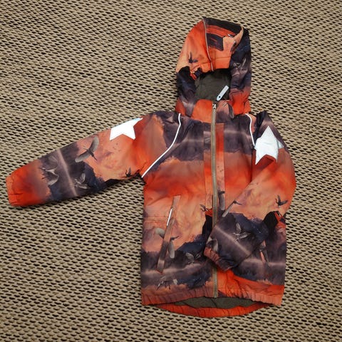 Pientä kulumaa ja tummentumaa siellä täällä, mutta yleisilmeeltä siisti toppatakki.