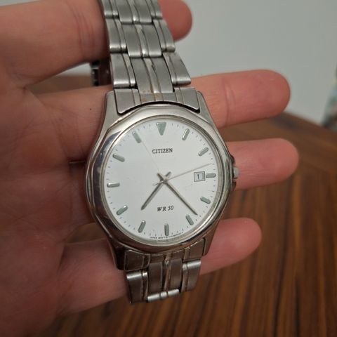 Jo elämää nähnyt kello, kuvat. Pariston vaihdon tarvitsee. Vuosia ollut laatikossa..ei tietoa toimiiko vielä. Toimivana jätetty aikoinaan laatikkoon kuitenkin. Citizen.