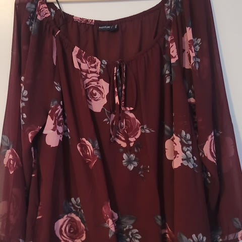 Reetriikka - merkkinen kukallinen pusero, valmistaja Tammituote, koko 52, materiaali 100% viskoosi. Ry 136cm, lantio 140cm, pituus olkapäältä helmaan 85cm, hihan pituus 60cm. Jäänyt kokonaan käyttämättä.