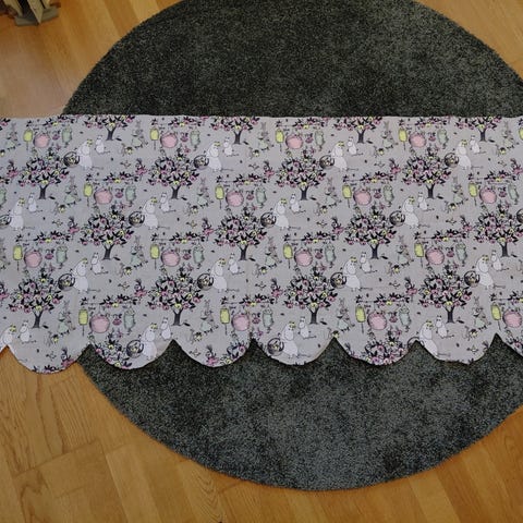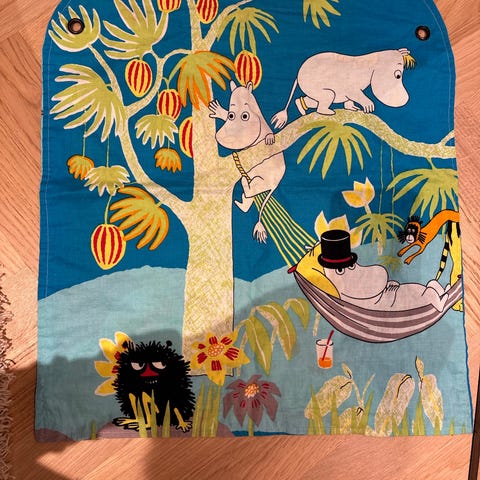 Hyvässä kunnossa oleva muumi vaunuverho. Koko noin 40cm×49cm ja 18€.