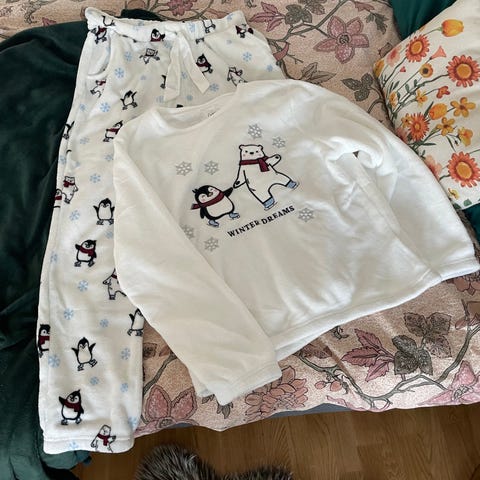 Käyttämätön puuterinvärinen Skin Organic Pima Cotton pyjama. Materiaali pima cotton puuvillatrikoo. Sanotaan, että tämä puuvilla on maailman laadukkain. Pyjaman housuissa on viistot taskut ja kuminauha vyötäröllä. Yläosassa on halkiot sivusaumoissa. Koko XL.