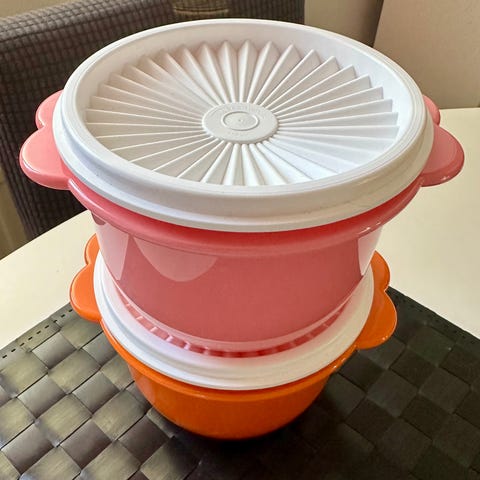 Tupperin 2 kpl Retro pyöreät tähtikansipurkit, molemmat 1.5L, on vähän käytetty.