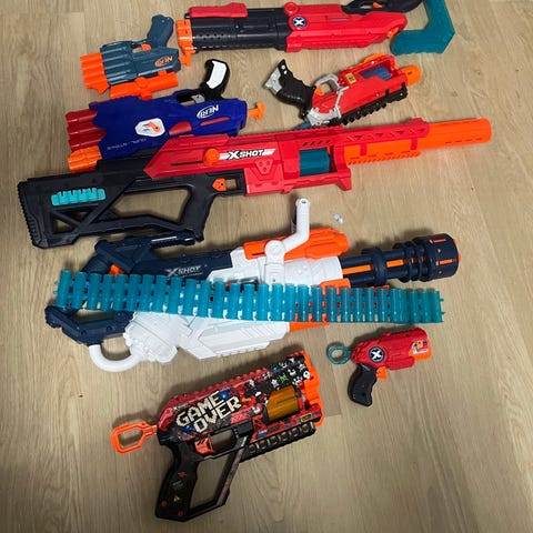 Myyn Nerf-settiä, yksi sähkökäyttöinen akkukäyttöinen X. Annan myös pois useita vesipyssyjä.