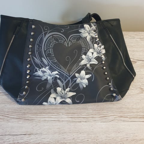 Uusi, musta laukku tilava sisältä. Myös pitkällä hihnalla. Koko k. 25 X l. 37 cm. Hinta 55,-