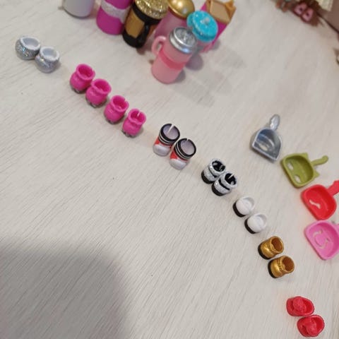 Pukuleikkeihin L.o.l. laukut, rusettipannat, kaulakorut ja rannekorut.