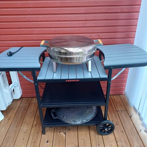 Vähän käytetty, hyväkuntoinen Muurikka-sähkögrilli. Grillissä on kaksi sivutasoa ja kaksi hyllyä. Lisävarusteena muurikkapannu.
