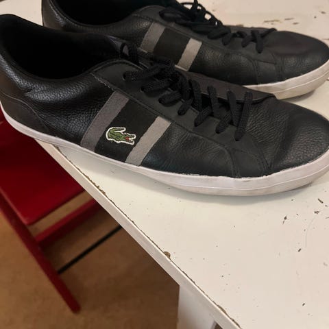 Käytetyt, mutta ehjät. Vähän pintakulumaa. Pieni 44, kuten Lacoste yleensä.