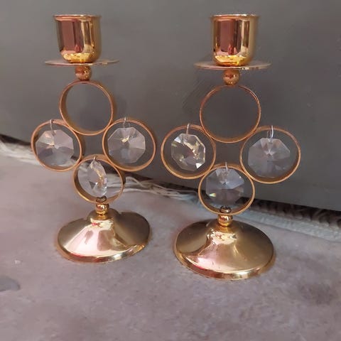 Koristeelliset kynttilänjalat metalli/ kristalli materiaali.