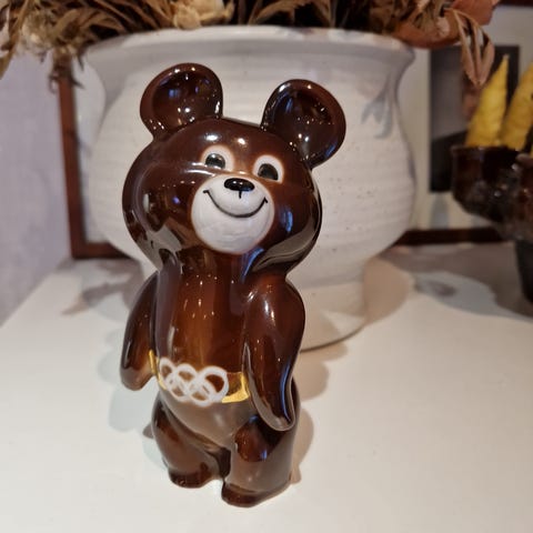 Moskova 1980 Olympialaiset Miska (Misha) karhu. Korkeus n 13 cm. Posliinia.