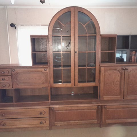 Hyvässä kunnossa oleva upea iso liuku-ovi vitriini. Ollut paikallaan 10 vuotta, oikeastaan käyttämättä, pieni määrä tavaraa ollut varastossa hyllyillä. Asunto ollut suurimman osan ajasta käyttämättä. Uutena hinta ollut noin 3500€