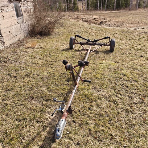 4.3m pitkä ja 3mm rosterista tehty ranturi myynnissä jyväskylän Tikkalassa. Etuosan telakka täytyy uusia ja maksaa esim. Puuilossa 30-50€.
