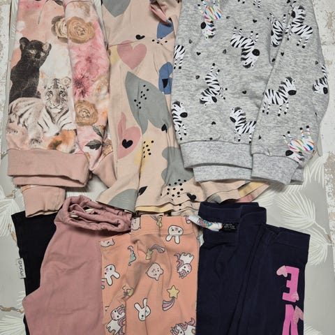Vaatepaketti tytölle. Gugguun 98 koon spagettiolkainasu, mayoral tyllihame 98, Adidas x marimekko pinkit shortsit. Kokomerkintä 116, pientä kokoa. Meillä 110 käyttävälle nyt liian tiukat. Nyppyä pinnassa, muuten siistit. Ryhmä hau paita, resoreissa nyppyä. S.oliver yksisarvishuppari 92/98, menee pidempäänkin. Tämä ollut ihan lemppari, vielä käyttökelpoinen.